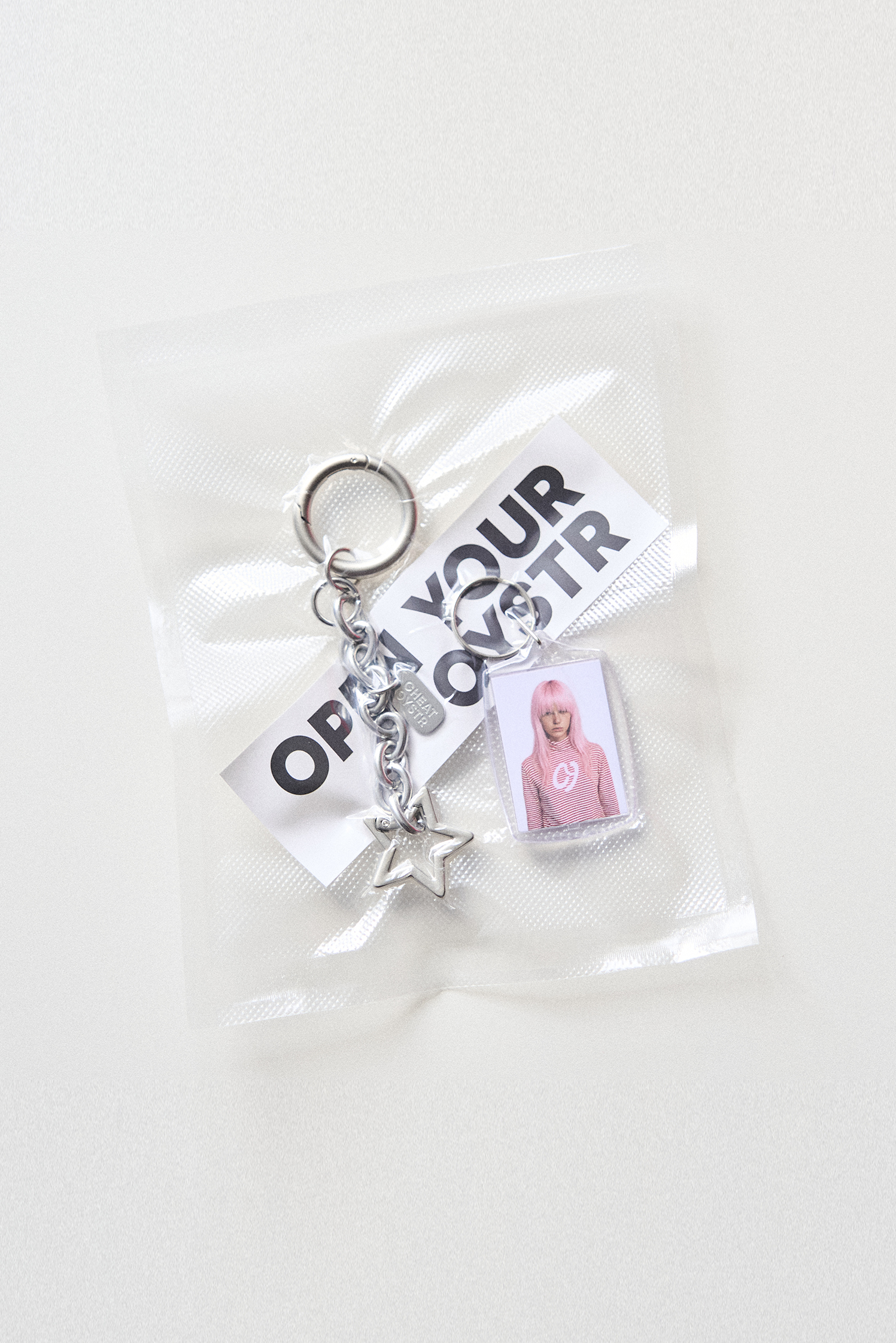 - 오이스터걸의 포토 키링과 함께 제공됩니다