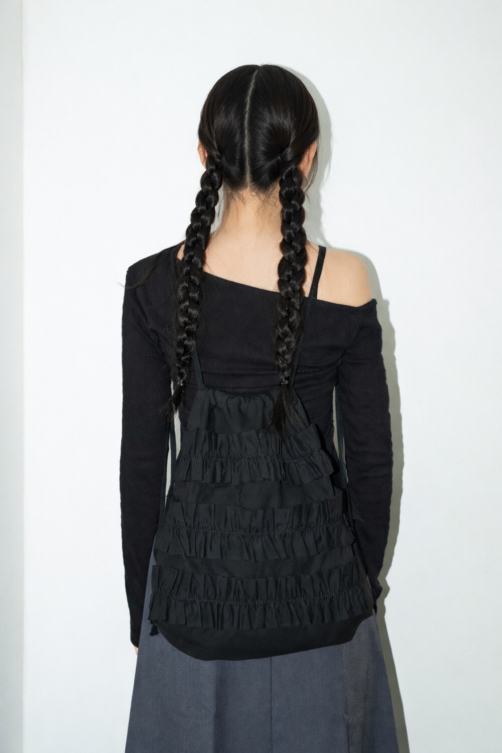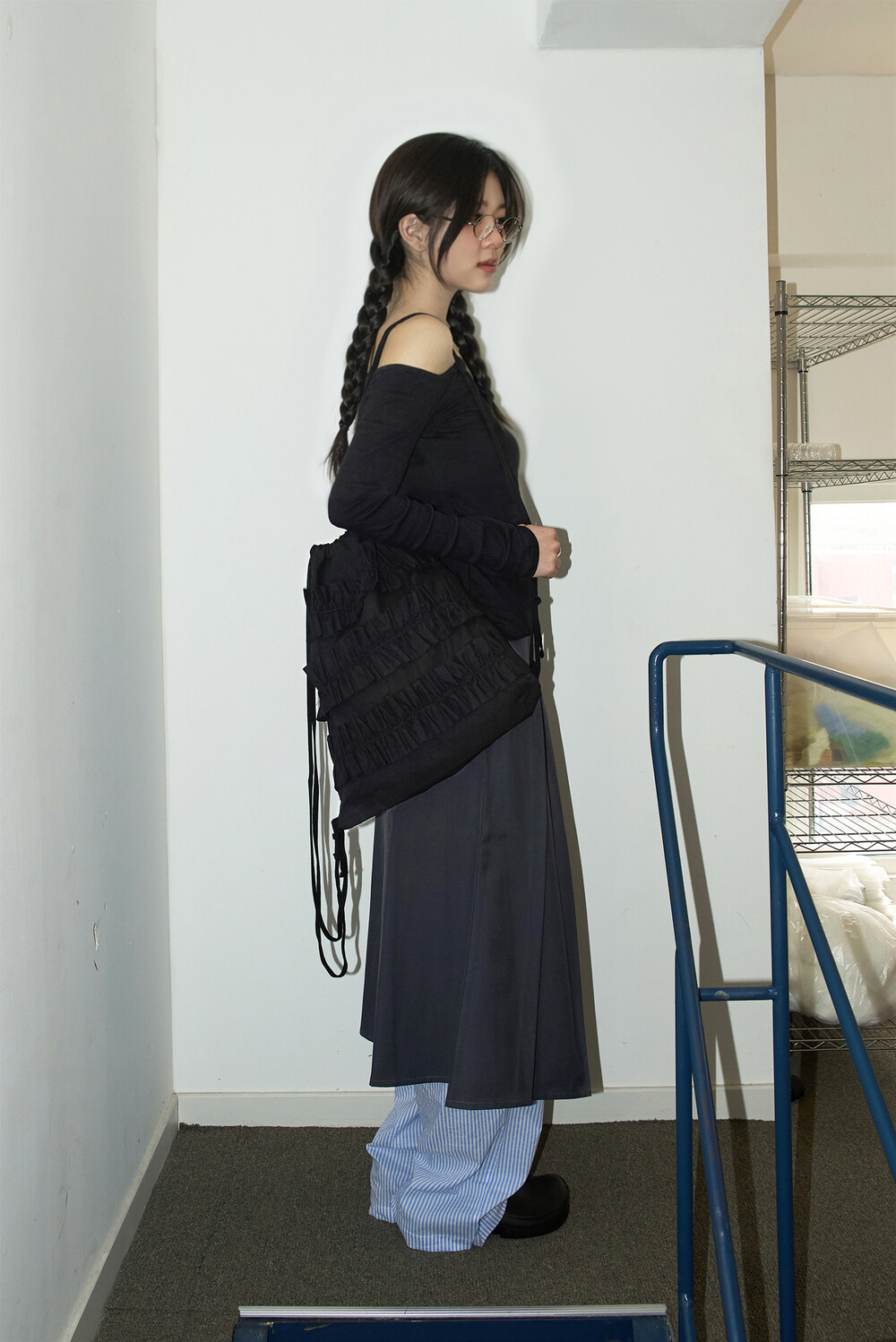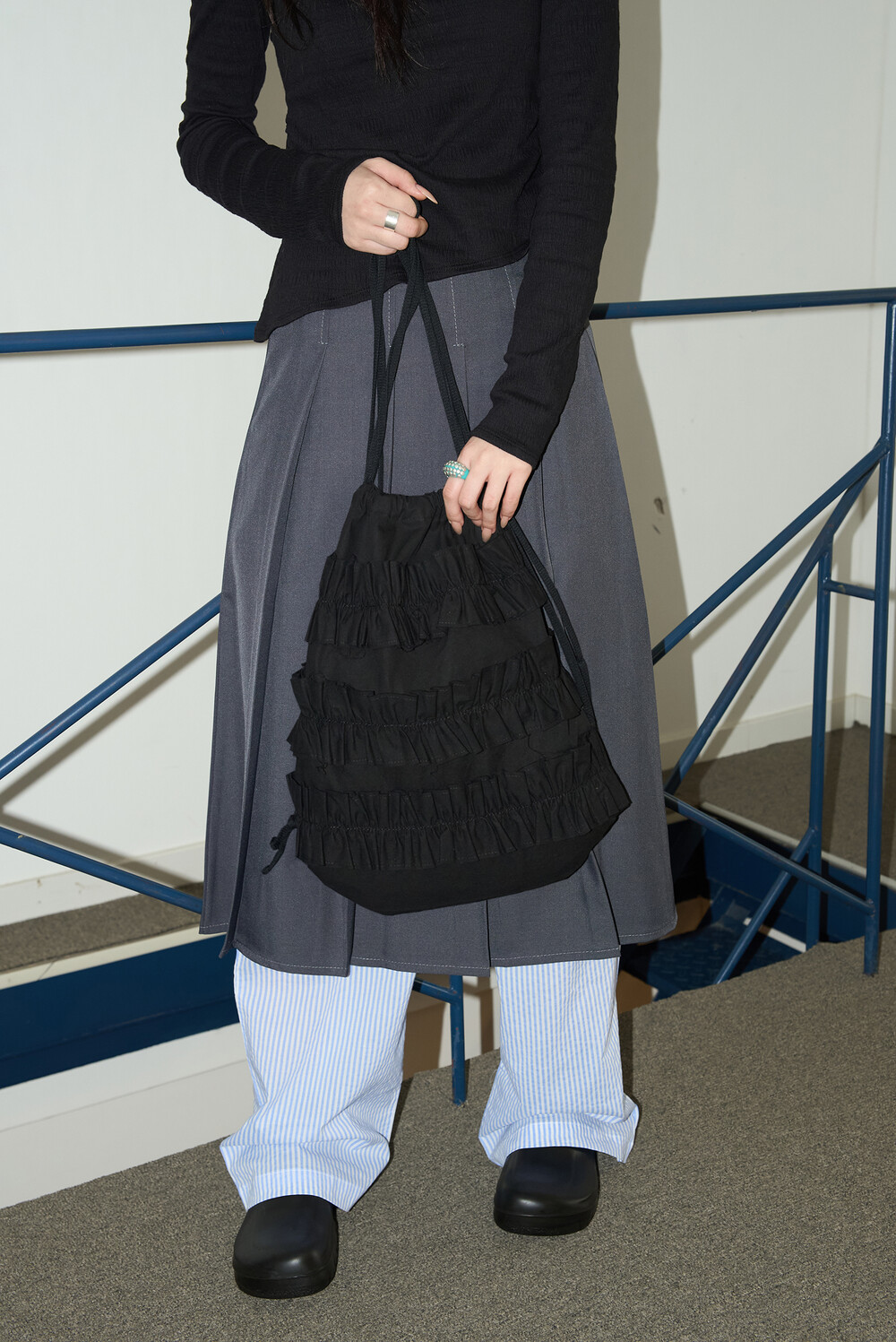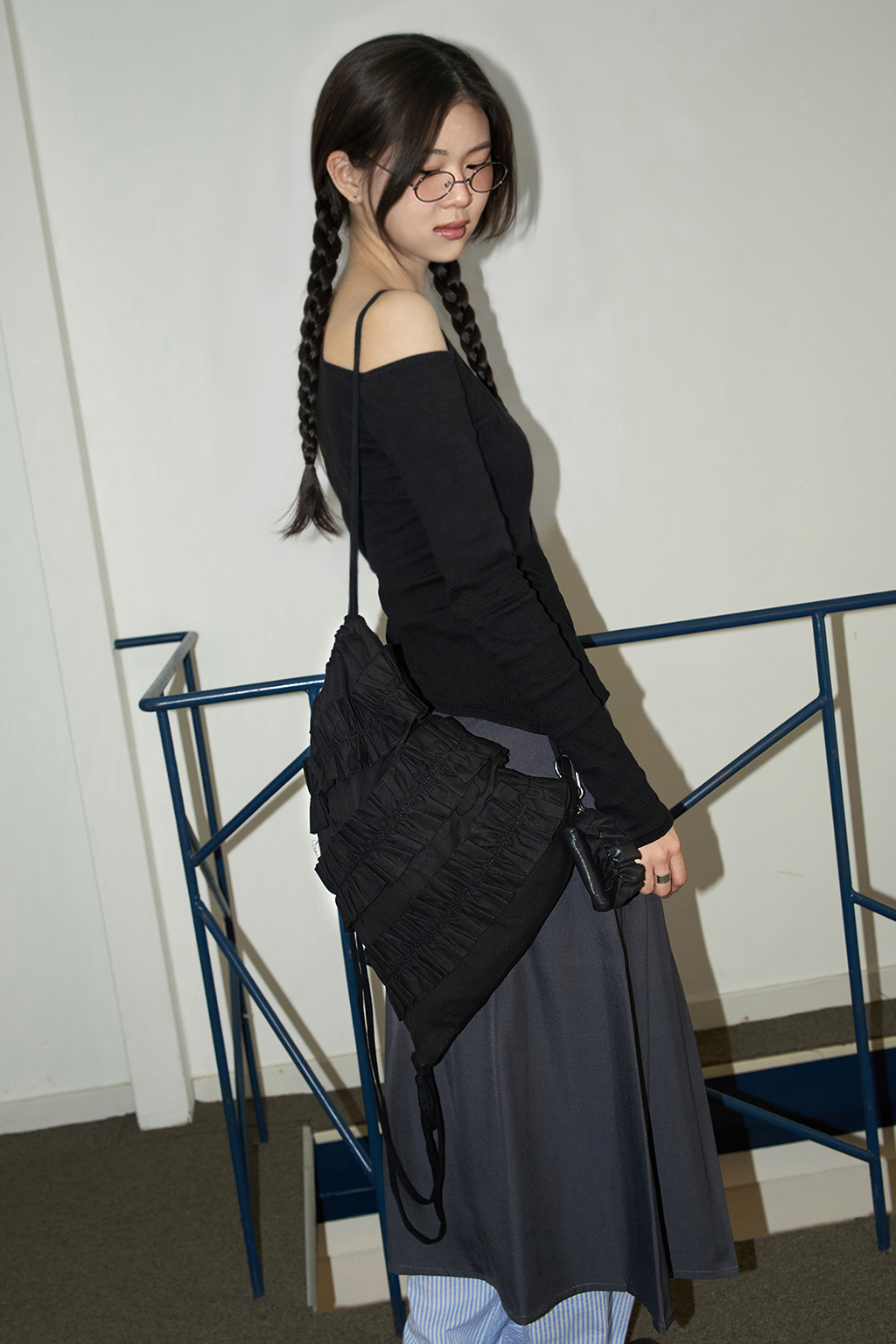 가방 앞면에 위치한 러플에 가려진 히든 포켓은 작은 소지품의 안정적인 보관이 가능합니다.