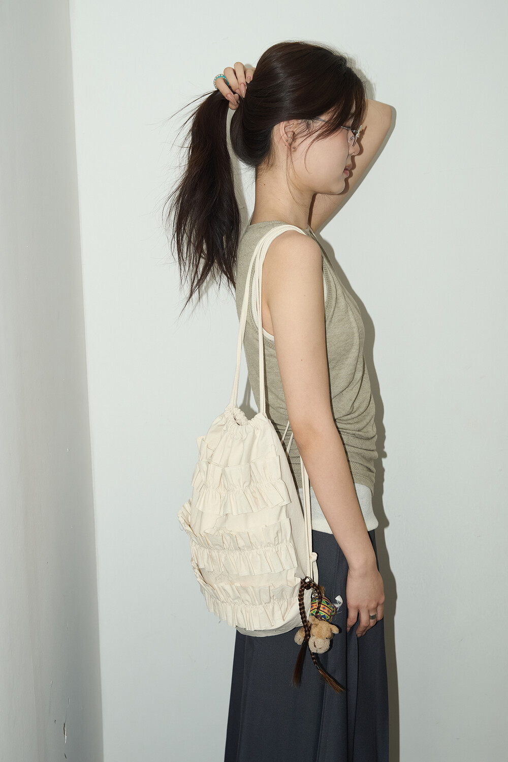 Ruffle Drawstring Bag Ivory
