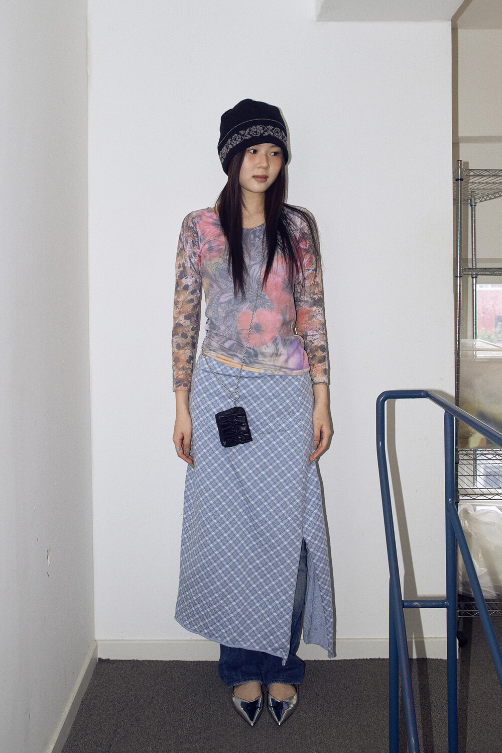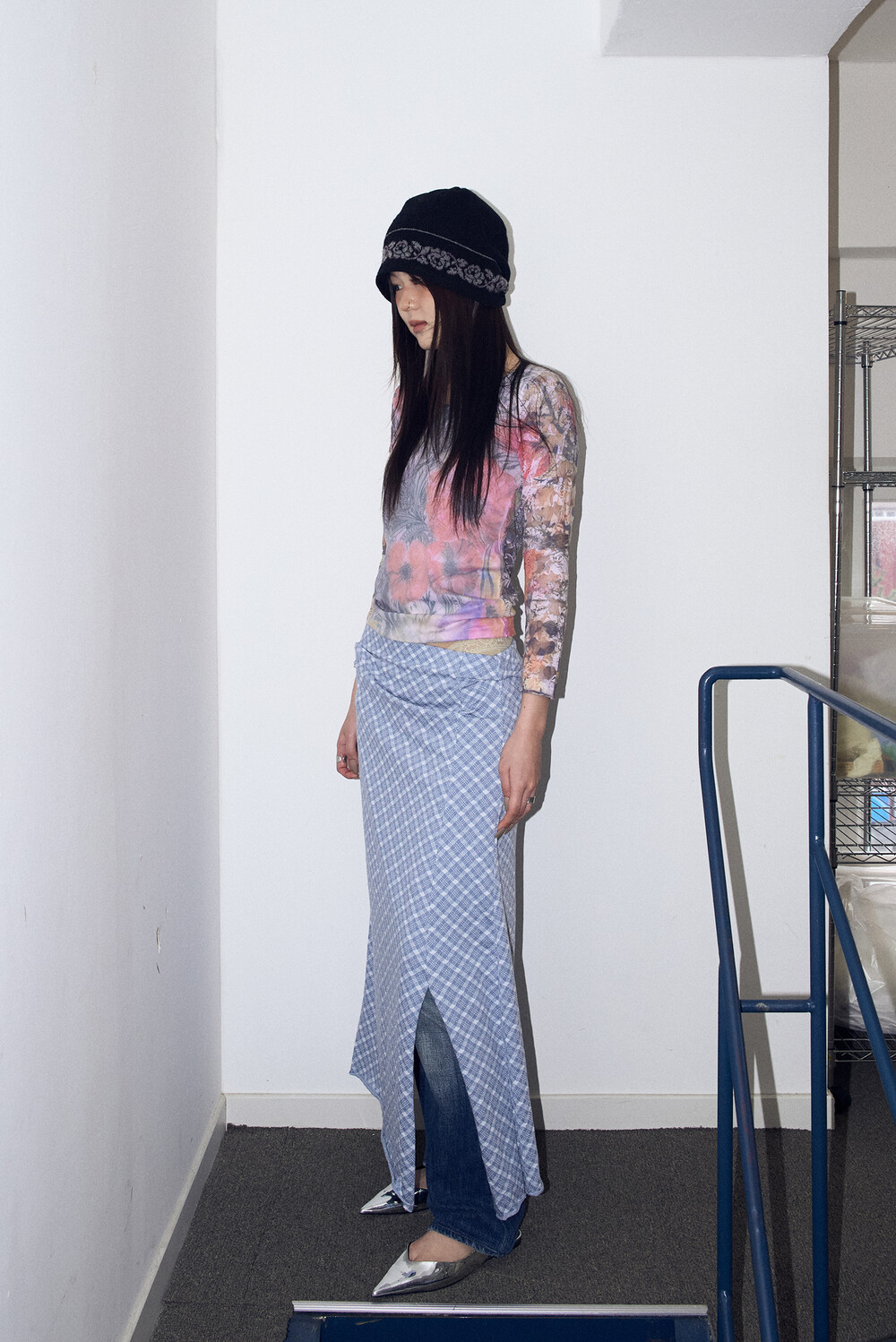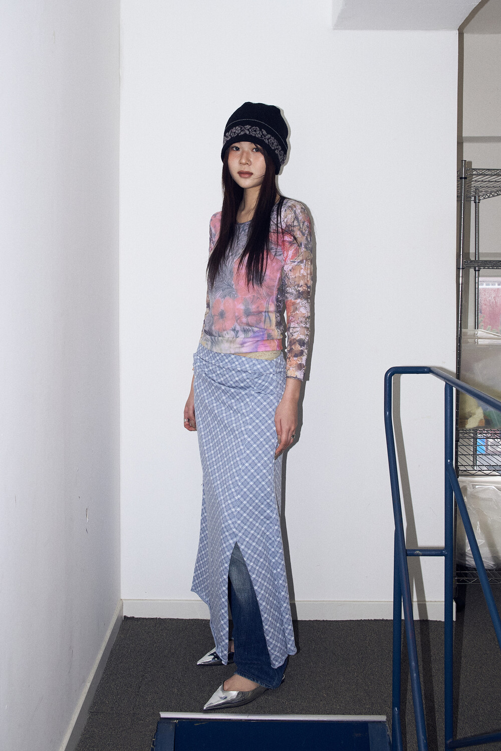 잘려나간 선으로 디자인한 대담한 스커트입니다.